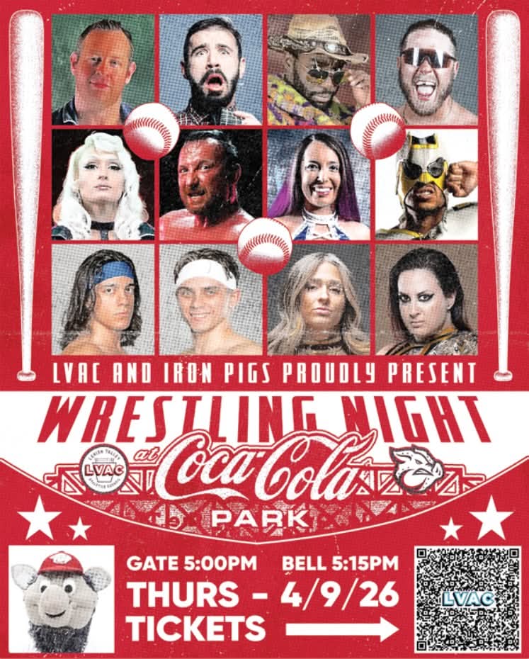 Thursday April 9th the Lehigh Valley Ironpigs minor league baseball team is bringing live pro wrestling action to Coca-Cola Park! The in-ring action happens before the first pitch, bell at 5:15!
